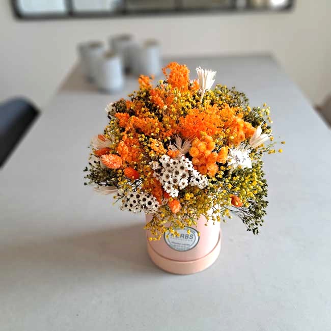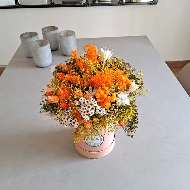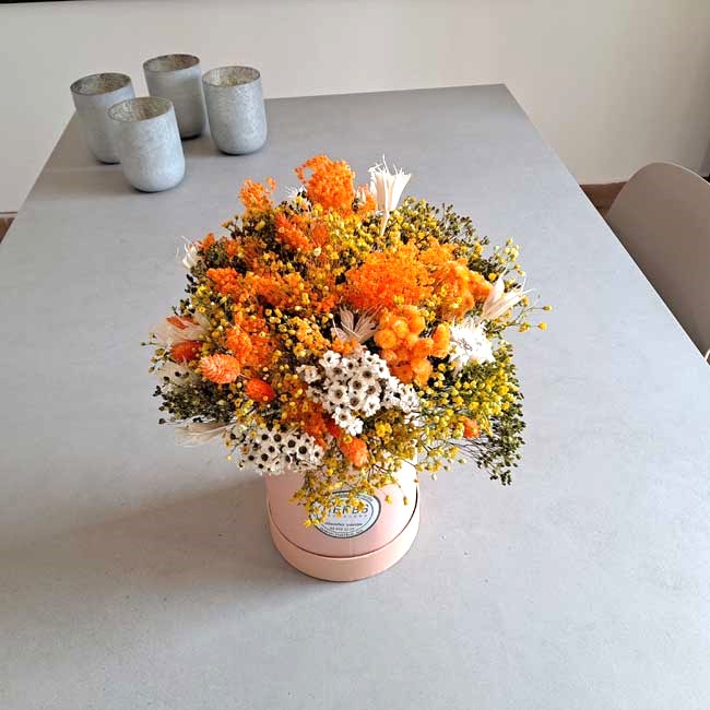 BOUQUET OF DRIED FLOWERS IN A HAT BOX