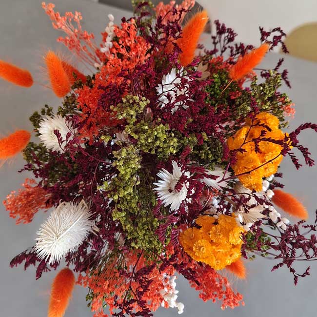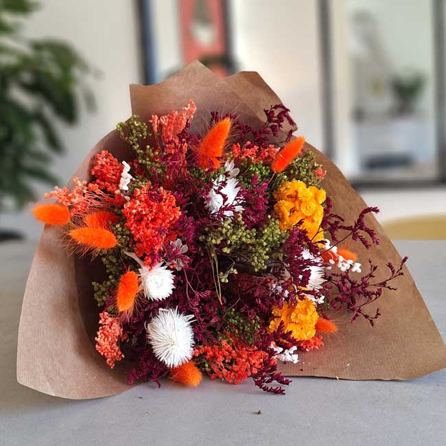 Red and Orange Dried Flower Bouquet – Vibrant Energy and Wild Style