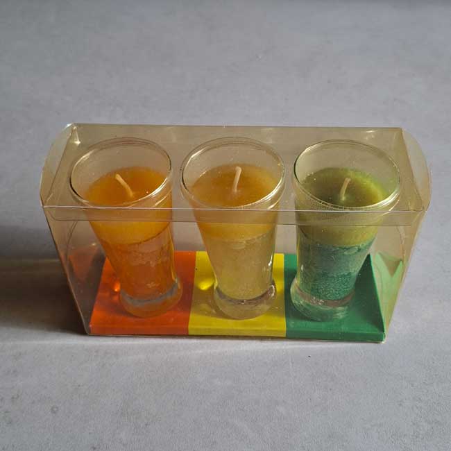 With every purchase over €22, receive this free set of 3 colorful candles.