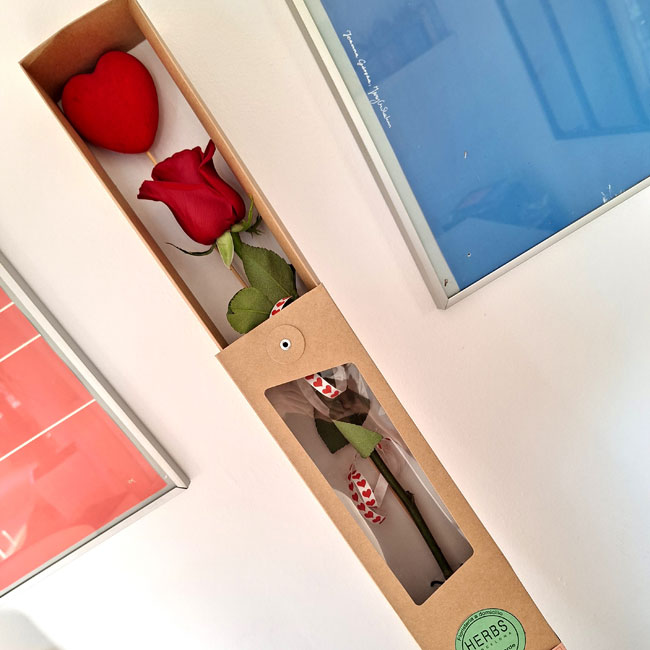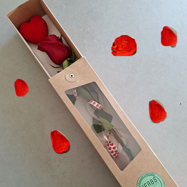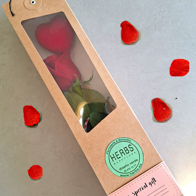 Long red rose in a box